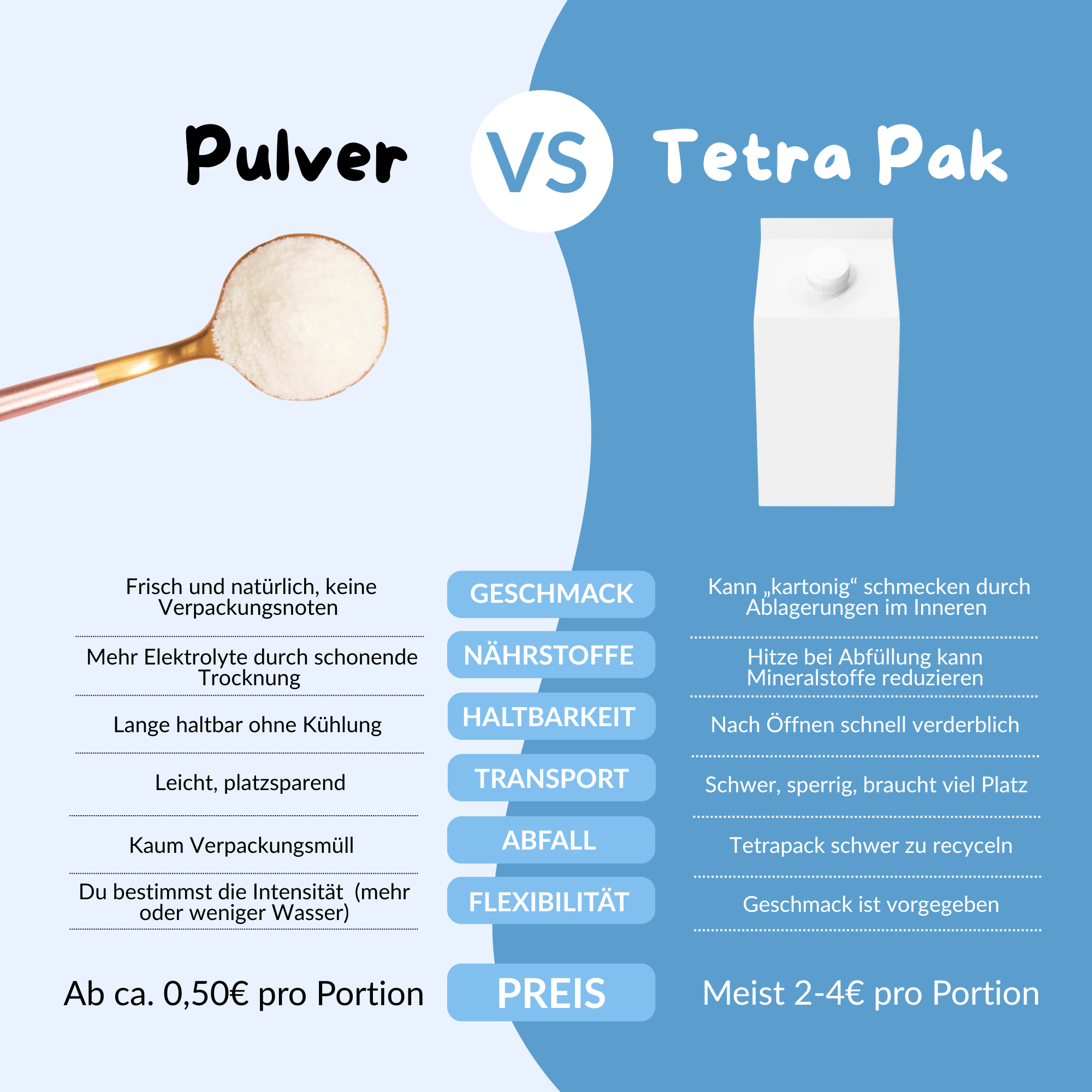 In herkömmlichen Tetrapaks können sich an den Innenwänden Ablagerungen bilden. Diese Schichten nehmen Gerüche und Geschmäcker aus der Verpackung auf und geben sie an das Getränk ab. Das Ergebnis: Das Kokoswasser schmeckt oft nicht mehr frisch, sondern „verpackt“.